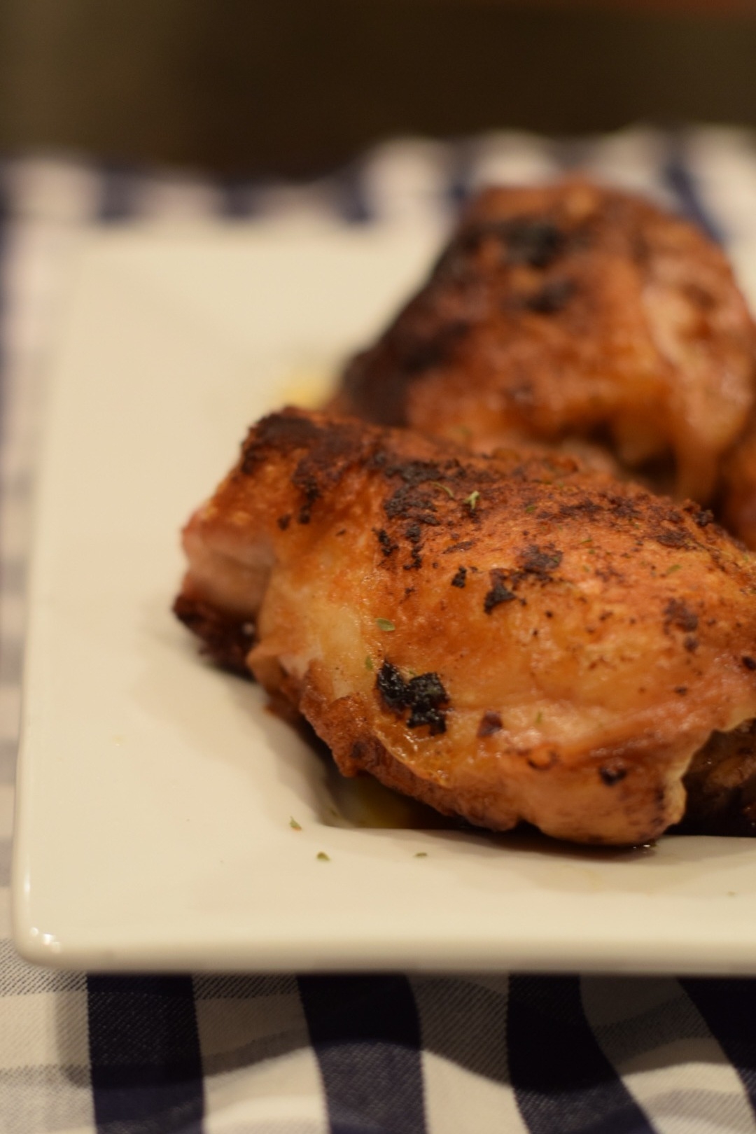Next, in a large bowl, combine the chicken thighs, avocado oil, harissa, cumin, sea salt, black pepper, and garlic powder. When shopping for chicken thighs — or any foods for that matter — choose items with little additives. Lay out the chicken thighs on the wire rack skin side up and place inside the. Crispy spice crusted chicken thigh recipe with summer coleslaw that is perfect for keto diet meal prep. If you don't have bacon (and don't want to buy it), use olive oil instead.